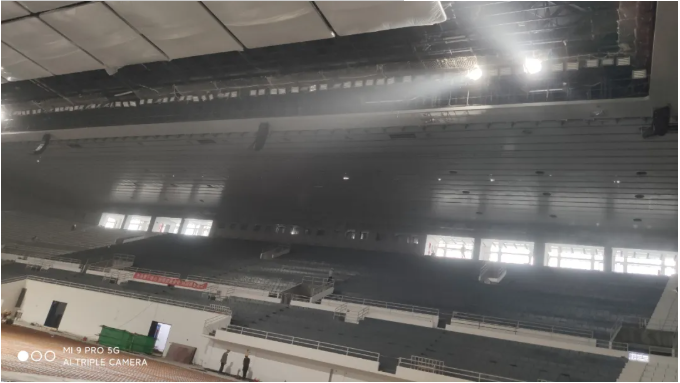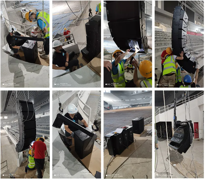 天博國際有限公司現(xiàn)場總負(fù)責(zé)人林社麟先生說道:“我們現(xiàn)場進(jìn)行安裝工作的時(shí)間十分有限,因此我們在地面上把線陣列音箱組裝起來,并按照模擬軟件NS-1計(jì)算出來的角度和方向,調(diào)整好每個(gè)音箱,再把音箱吊掛到離地面十多米的位置固定好。再通過Dante網(wǎng)絡(luò)在電腦上使用NeMo軟件遠(yuǎn)程操控。將音量,增益,延時(shí),分頻點(diǎn)及輸出跳線設(shè)置好,并對音箱進(jìn)行檢查。最后這個(gè)體育館具有聲壓均衡且高清晰度的效果。”