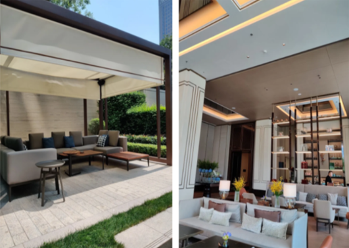 27樓屋頂酒吧Flair,分室內室外兩部分,配置DJ打碟機,主擴聲由EV SM系列全頻同軸+15寸超低音組成,室外視野極佳,就坐于池水邊。身邊綠植叢中隱藏的EV 8寸蘑菇音箱同步播放室內音樂,品美酒賞夜景甚為愜意,開業即成為高新區的一個新的網紅打卡地。