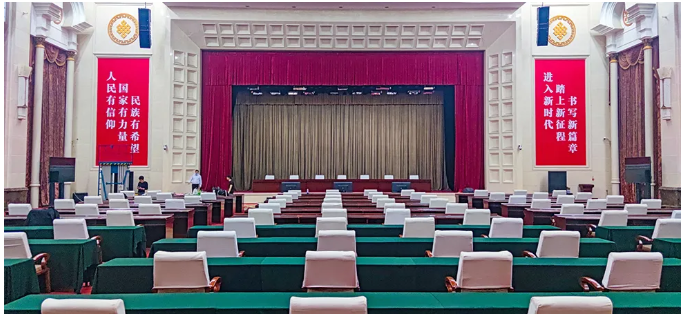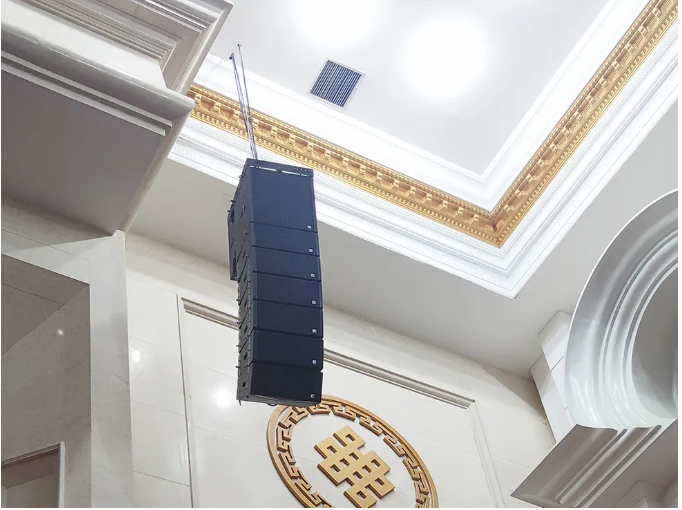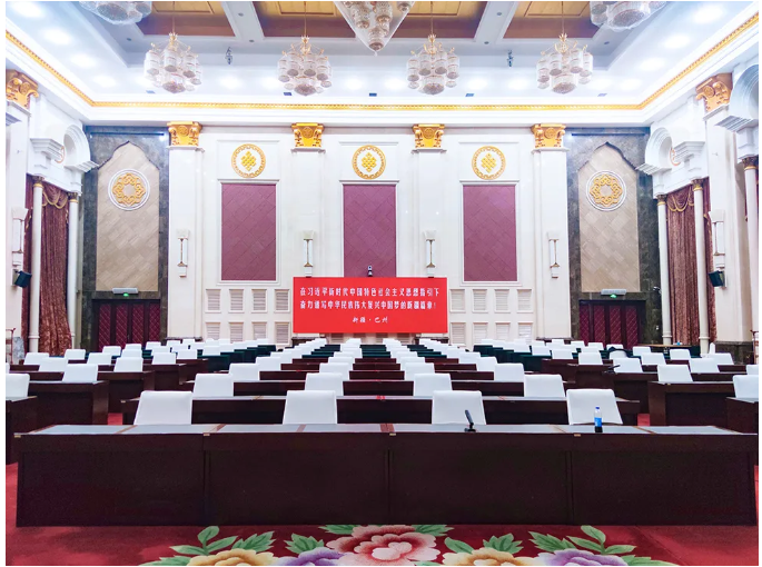 巴音郭楞賓館座落于南疆中心城市庫爾勒市最繁華的人民東路10號,是國家五葉級綠色飯店。賓館占地面積84畝,綠化面積占47%,素有“都市森林”的美譽。巴音郭楞賓館以獨具地方民族特色的熱忱服務接待過三十余位黨和國家領導人及國際政要。其多功能廳選用了“RF”VK線陣列揚聲器系統。