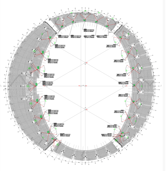 擴聲控制室位于體育場西北角,并在其他四個拐角設置3間功放機房,用于布置主擴揚聲器系統相關的功率放大器設備,這樣可以有效縮短揚聲器線纜傳輸距離,降低信號衰減,保證主擴聲信號質量。