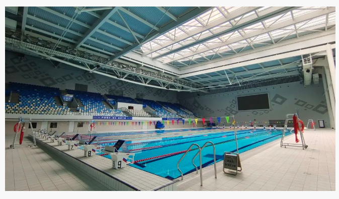 清遠奧體中心游泳館分為地下一層,地上三層,可容納2000人觀賽。游泳館比賽池上空采用大跨度可開合活動屋蓋,開合跨度寬達24米,能在5分鐘內實現室內與露天泳池的切換,是一種新型的可變形態(tài)建筑。